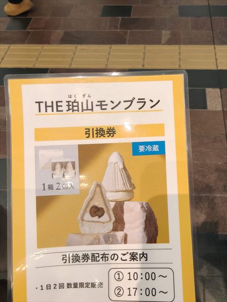 16:20分くらいに大丸東京に着きました。10時の並び場所は大丸東京で記載があるので分かりましたが17時からの販売の列がどこにあるのか分からなかったですがモンブランTHE珀山の店舗の出たところに列ができていました。