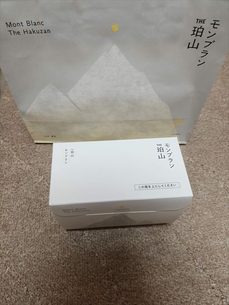 実際のTHE珀山モンブランはこちら。箱は上から開かないで横から引き出します。